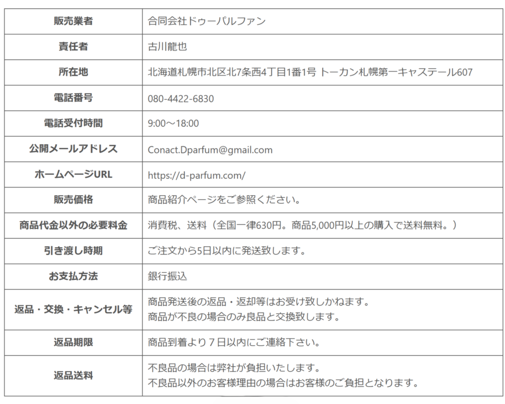 特定商取引法に基づく表記